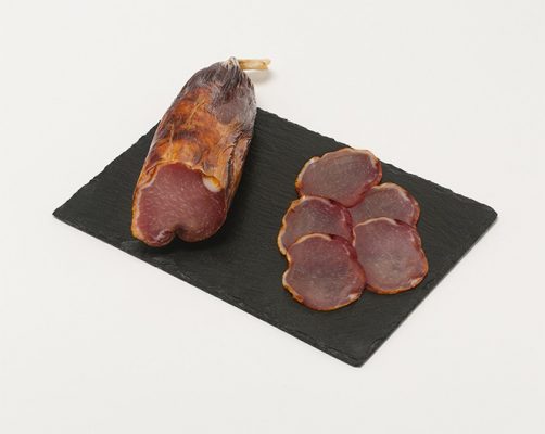 Produit élaboré à base de muscle ilio-spinal de porc de race Duroc, salé, mariné et embossé dans un boyau naturel, puis soumis au procédé de maturation approprié.